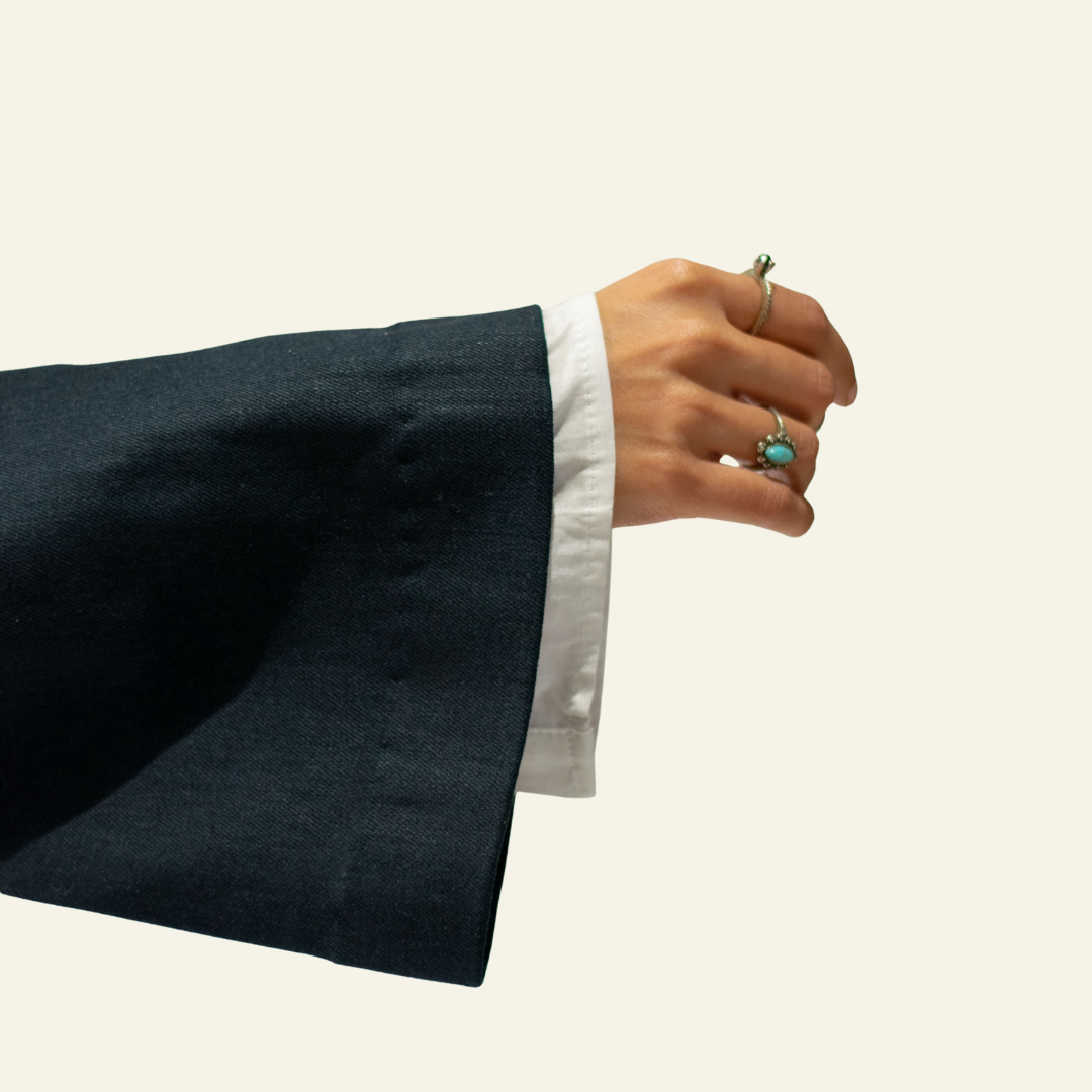 Rooted in the spirit of 1960s women’s liberation movement, this structured denim blazer redefines femininity through form, detail, and defiance. Crafted from 12.5oz dry dark selvedge denim, the sculpted silhouette with broad lapels channels quiet confidence, while sharp tailoring and subtle volume at the sleeves bring a contemporary edge to a classic frame. This piece stands as a tribute to the women who challenged convention with power and grace.